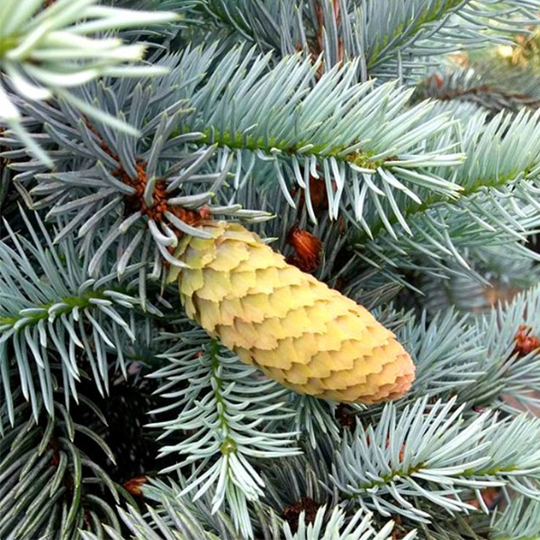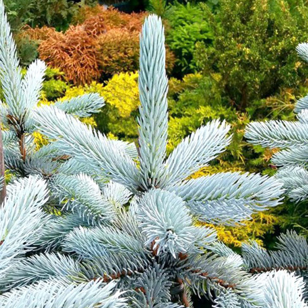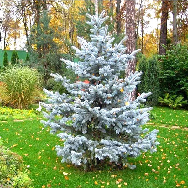 Ель колючая Hoopsii - Picea pungens Glauca Hoopsii. Это одна из красивейших голубых елей, правильной конической формой кроны и серебристо-голубой хвоей. Сорт тиражируется прививкой. В 10 – ти летнем возрасте высота в пределах 2 м. Хвоя жесткая колючая серебристого цвета, иногда насыщенного синего, до 3 см длиной. Абсолютно морозостойка и не требовательна к почве. В молодом возрасте необходимо подвязывать центральный побег к вертикальной опоре и пристригать крону по всей площади, чтобы помочь дереву сформировать густую крону с правильной геометрией.