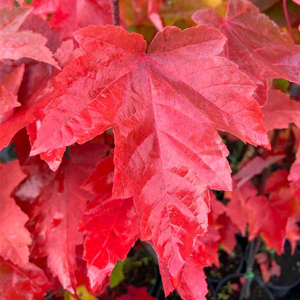 ACER rubrum Fairview Flame – Клён красный Fairview Flame. Листопадное дерево высотой 10-12 м при диаметре кроны 6 м. В молодом возрасте крона имеет пирамидальную форму, с возрастом - шаровидную. Листья 5-10 см длиной, 3-5-лопастные, лопасти треугольные; летом зелёные, а осенью чаще всего - красные, иногда оранжево-красные или красные с небольшим пурпурным оттенком. Предпочитает плодородную, увлажнённую, суглинистую почву. Хорошо переносит городские условия. Морозостоек. Хорошо растёт на солнечных и полу тенистых местах.
