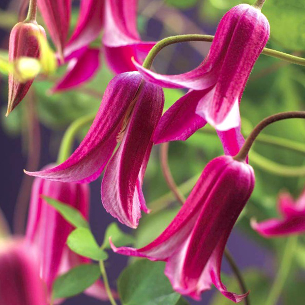 Клематис Princess Diana (Принцесса Диана) – Clematis Princess Diana крепкая , быстрорастущая лиана. Может достигать высоты в 2,5-3,0 м, ему характерна травянистость побегов и густая, перистая листва. Толстые и крепкие на ощупь листья, напоминающие кожу, Цветение просто восхитительное и продолжается с июня до октября. Цветки в форме тюльпанов. Диаметр цветков достигает 5-8 см, лепестки с заостренными, направленными вверх кончиками. Их окраска этакая глубокая розовая фуксия.