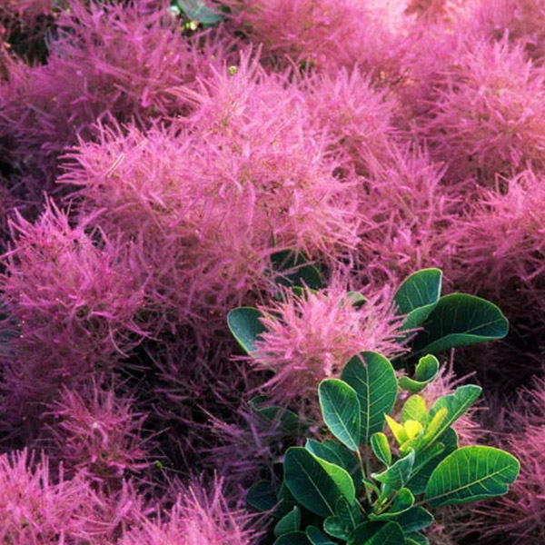 Скумпия кожевенная ‘Smokey Joe’ - COTINUS coggygria SMOKEY JOE 'Lisjo' Новый сорт кожевенной скумпии -SMOKEY JOE 'Lisjo' , который появился пару лет назад благодаря Peter Moore из UK. Сорт особенный не только из-за своей компактной кроны и обилия розовых цветов с лета до осени, но и из-за того, что зацветают молодые саженцы в год посадки! Зеленые листья окрашиваются осенью в оранжево-красный цвет. Крошечные, неприметные цветки собранные в довольно крупные верхушечные метелки, отцветая превращаются в роскошные розово-красные, пушистые ‘одуванчики’(семенные головки).
