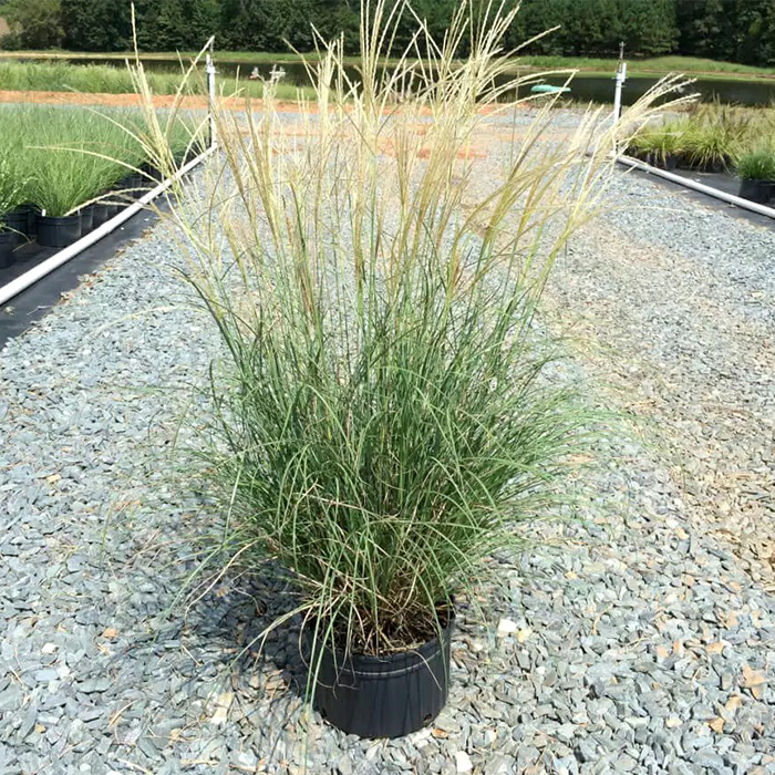 Мискантус китайский Адажио -Miscanthus sinensis Adagio это многолетний декоративный злак, один из карликовых сортов Мискантуса. Узкие, очень жесткие грациозно сгибающиеся вниз листья образует компактную, плотную, пышную кочку у основания не более 40 см, высотой около 50 см. Высота цветущего растения 100 см. Стебли дуговидные или прямые, зеленые, осенью медного окраса . на вершине стеблей кисти из метельчатых соцветий.