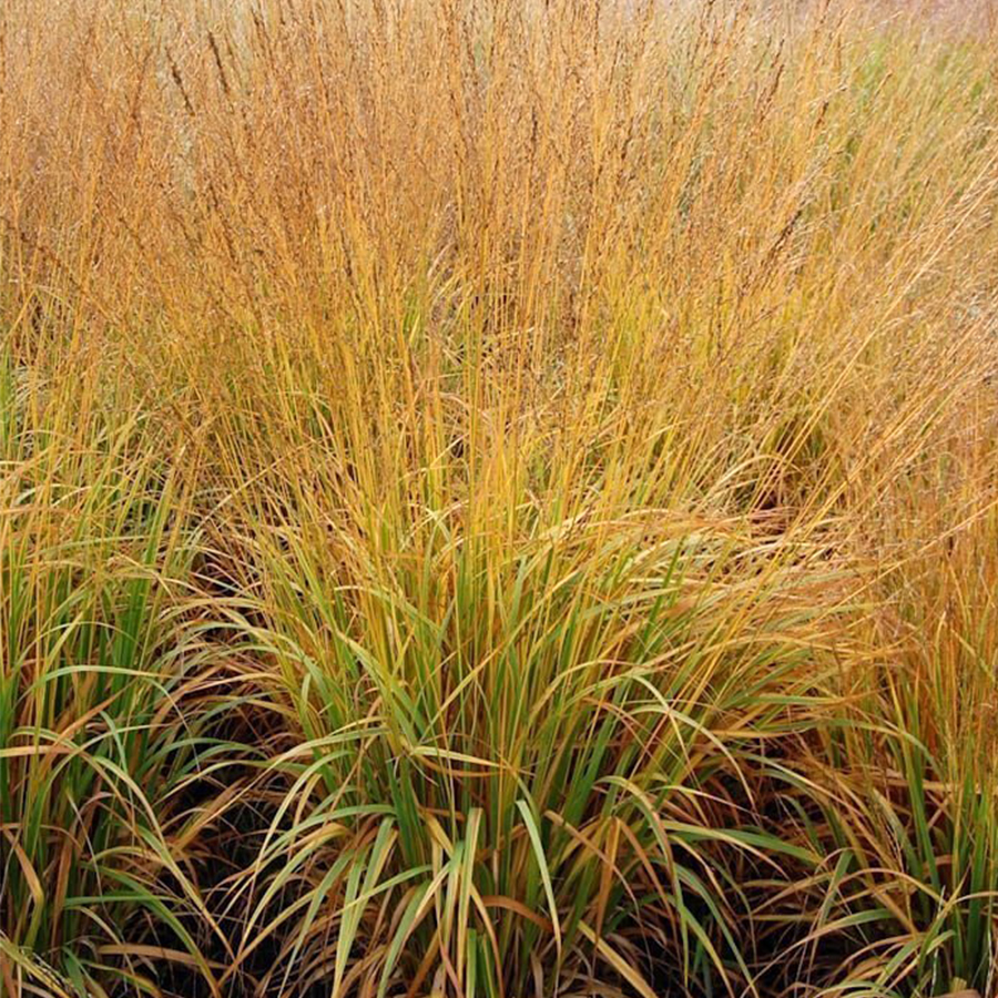 Образует плотную кочку, напоминающую раскидистый фонтан. Листья узкие, прямые, прикорневые, шириной 3–6 мм, сизовато–зеленые до 50см. Стебель не ломается до середины зимы до 0,9м высотой с длинным соцветием-метелкой, узкой, сжатой, 15 см длиной. Зацветает в VІІІ. Для лучшего роста растению требуется влага. Акцентное растение. Длительность выращивания на одном месте до 15лет. Куртины особенно декоративны осенью, когда они приобретают яркую желтую или оранжевую окраску. Зона зимостойкости 4.