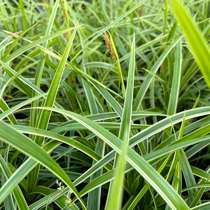 - Осока Морроу Айс Дэнс - Carex morrowii 'Ice Dance' Осока Морроу Айс Дэнс травянистый, многолетний злак, состоящее из компактных розеток с нарядными пестрыми листьями. Листья имеют линейную форму и зеленый цвет с кремовой каймой. Высота листвы 30-40 см. Период цветения растения приходится на май-июнь, когда малоприметные , нежные колоски добавляют еще больше очарования саду или клумбе. Осока этого сорта не требует сложного ухода и укрытия на зиму. Этот сорт выдерживает морозы до-29°C -34 °C. Желателен питательноый и хорошо дренированный грунт, поскольку осока не переносит как слишком сырых, так и чрезмерно сухих почв.