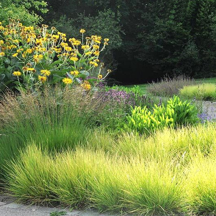 Привлекательные, тоненькие вечнозеленые листовые пластины. Весной молодая листва выглядит светло - или желтовато-зеленой, а летом набирает желтизну, привлекая внимание своей яркостью. В конце лета - начале осени она зацветает перистыми соцветиями серебристого окраса. Сеслерия выглядит эффектно в любое время года, при этом она нетребовательна к почве и к уровню освещения. Этот стойкий и неприхотливый злак может расти практически на любой почве. При этом он совершенно нетребователен к уходу.