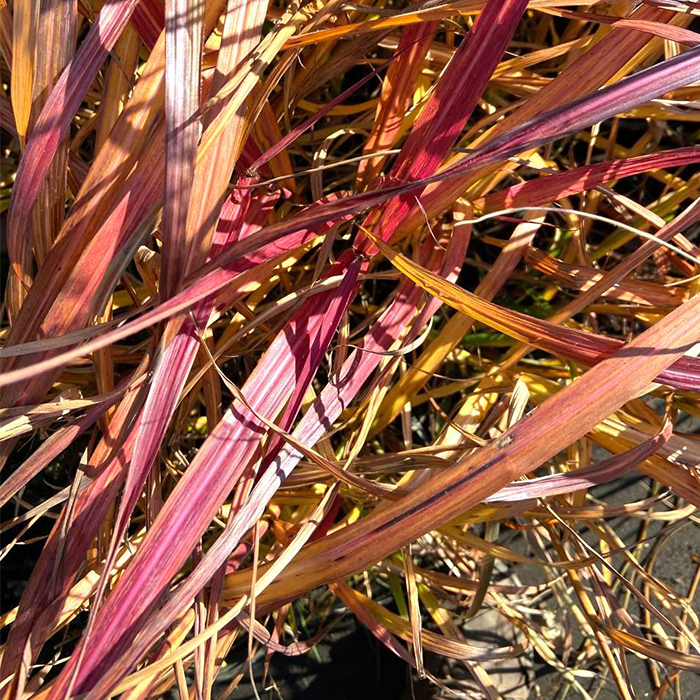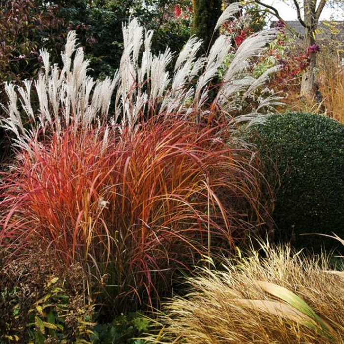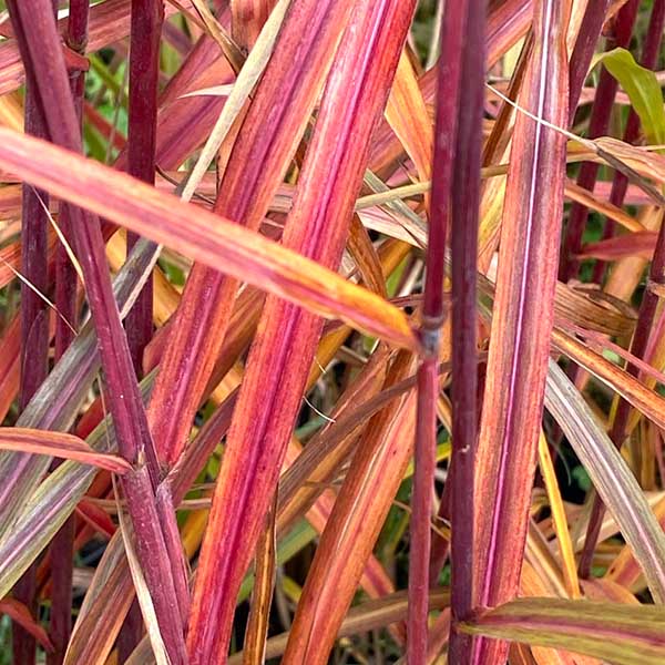 Мискантус Дроннинг Ингрид – Miscanthus sinensis Dronning Ingrid  -  многолетний декоративный злак, образует  прямостоячий аккуратный, эффектный куст, достигающий 1,5 м с колосом.  У него широкие, большие листья оливкового цвета, которые к концу лета приобретают фиолетовый цвет, а осенью набирают медно-красные оттенки, при условии, что растение находится на открытом солнечном месте. Соцветия имеют форму метелки. Они окрашены в темно-красный цвет, но со временем приобретают серебристый оттенок.
