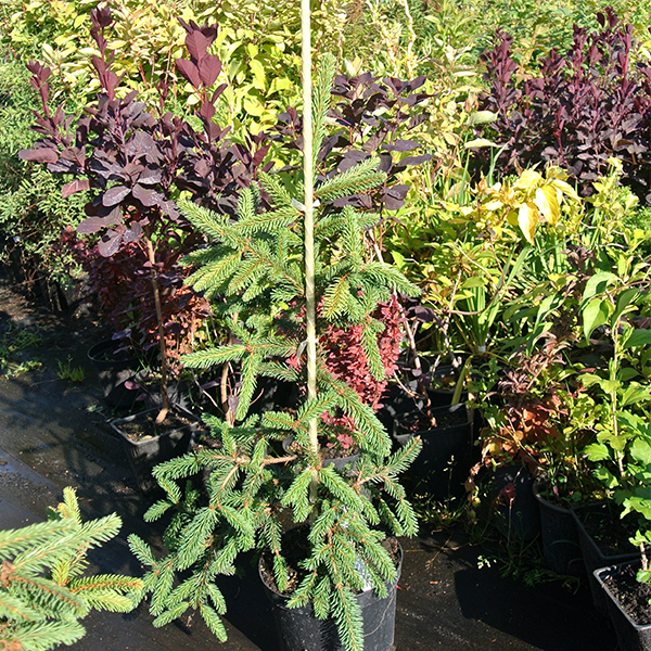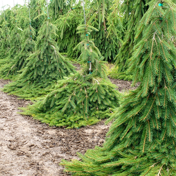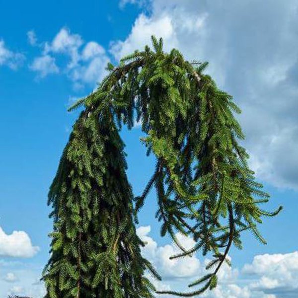 Ель обыкновенная Inversa - Picea abies Inversa. Ель Инверса это плакучая форма ели с живописной кроной, характеризующаяся отсутствием центрального побега. Это растение обычно тиражируется прививкой. Если прививка сделана почти на уровне земли, то выбирается любой побег, подвязывается к опоре и вытягивается (регулярной подвязкой) на необходимую высоту. После того, когда дерево достигло, например, высоты 2,7 м центральный побег удаляют, а все оставшиеся ветви продолжают рост, как бы струясь, ‘стекая’ с верху вниз, при этом нижние ветви лежат на земле у основания образуя эффектную ‘юбку’. Если центральный побег не обрезать, и не подвязывать, то он повиснет, напоминая вопросительный знак и дерево будет выглядеть не эстетично и не аккуратно. Хвоя на ветвях короткая, толстая, темно-зеленая, блестящая. Дерево используется в ландшафте как солитер или в групповых посадках с другими растениями, в роккариях, у небольших водоёмов. Светолюбива.