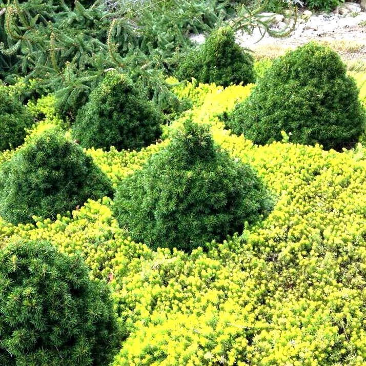 Ель обыкновенная Tompa - Picea abies Tompa. Медленно растущее вечнозеленое хвойное дерево. Имеет широкую коническую форму. Похожа на ель канадскую Коника, но более компактная форма и более крупная хвоя. В 10 лет высота и ширина не превышает 0,4-0,6 м. Во взрослом состоянии Ель обыкновенная Tompa достигает 1,5-2 м в высоту и до 1,5 м в диаметре. Хвоя ярко-зеленая густая. Из-за медленного роста ель многие годы не нуждается в формовочной обрезке и дополнительном уходе. Абсолютно морозостойка и не требовательна к почве, предпочитает солнечные места.