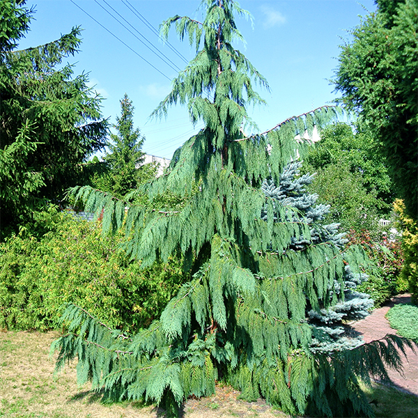 Кипарисовик нутканский Klipert - Chamaecyparis nootkatensis Klipert. Нутканские кипарисовики, известные как 'Пендулы', по праву считаются у ландшафтистов самыми живописными хвойными деревьями с повислыми, плакучими кронами. Такое необычное, величественное дерево придаёт участку сказочный вид. У широко растирожированного сорта 'Pendula' есть много мутаций, чаще всего это сорта отличающиеся от 'Pendula' шириной кроны, например «Юбили», «Грин Эроу», «Канада» у каждого из этих кипарисовиков крона уже чем у 'Pendul'-ы и уже чем друг у друга. Есть сорта нутканского плакучего кипарисовика с пёстрой хвоёй. Главное и основное отличие 'Klipert'-а от 'Pendul'-ы в том, что хвоя Клиперта с глубоко синим отливом, всё остальное по большому счёту как у 'Pendul'-ы. Дерево быстро растёт. В возрасте 10 лет Клиперт достигает 3м в высоту и до 2м в диаметре. Оно самодостаточно в саду. Его не нужно ничем обсаживать оно потрясающе смотриться одно на поляне, на заднем плане водного каскада или небольшого (большого) пруда. Кипарисовик нутканский Клиперт покоряет своей великолепной формой с изысканными свисающими побегами, напоминающими конские гривы.