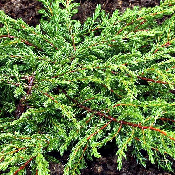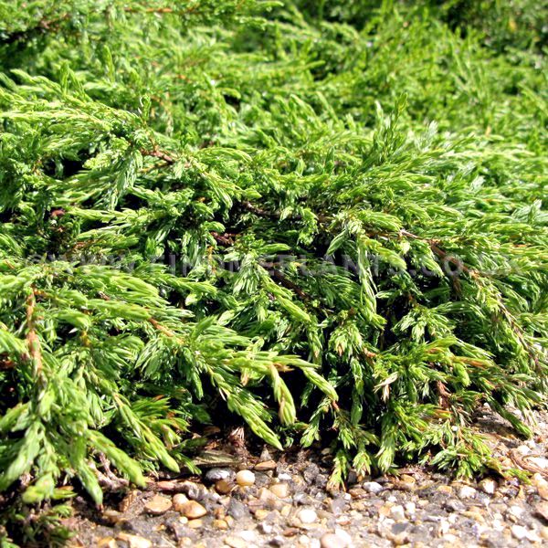 Можжевельник обыкновенный Repanda - Juniperus communis Repanda. Внешне представляет собой компактный, низкий, раскидистый хвойный кустарник с плотной кроной. В 10 - ти летнем возрасте его высота 20-25 см, а диаметр кроны до 1,2м. Набирает массу относительно медленно, за год в диаметре увеличивается не более чем на 10 см. Боковые веточки равномерно разрастаются во все стороны. Хвоинки игольчатой формы, коротенькие, мягкие, густо посаженые, темного зеленого цвета с серебристыми полосочками сверху. В холодное время года хвоя приобретает бурый оттенок. Засухоустойчив, к почве нетребователен. Используется для передних планов в миксбордерах и каменистых садах, исключителен в монохромных посадках геометрической формы небольшой площади, например 1,2м х 5 м.