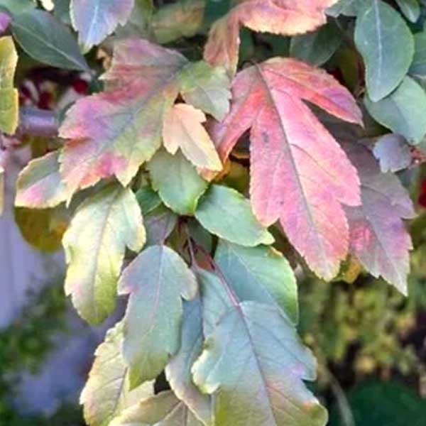 Это довольно крупное листопадное дерево с овальной, раскидистой, густой кроной, достигающей в диаметре 3 - 4,5 м. Листва глубоко -лопастная, глянцевая, с пурпурно-бронзовым оттенком (окраска меняется в зависимости от поры года: коричнево-красная — ранней весной, зелёная с пурпурный отливом — в летние месяцы, красная или коричневато-оранжевая – осенью). Цветки многочисленные, 3-4 см, тёмно-розовые или пурпурные, ароматные. Дерево чрезвычайно красиво в фазе цветения. Благодаря пёстрой и насыщенной окраске листвы дерево привлекательно в течение всего вегетативного сезона.