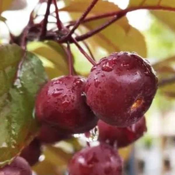 Плоды - миниатюрные яблочки (диаметром - 1,5-2 см) пурпурного цвета, собранные в объёмные гроздья, созревают в октябре, долго держатся на ветках, привлекая в сад птиц. Их вкус сладкий с чуть терпкой нотой. Плоды идеально подходят для экспериментов творческих домохозяек при приготовлении запечённого мяса, джема, варенья, компотов,  настойки, сухофруктов…