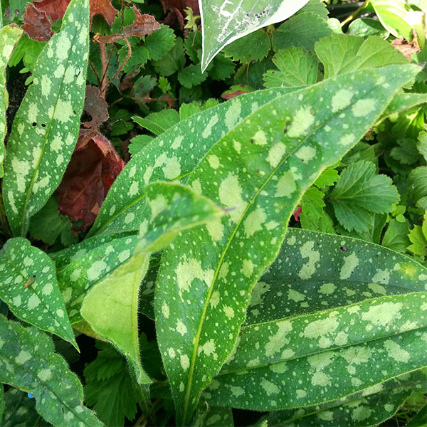 Медуница Rospberry Splash - Pulmonaria Rospberry Splash. Медуница ‘Малиновые брызги’ - неприхотливое, устойчивое к морозу, теневыносливое растение. Современные сорта примечательны прежде всего необычными нарядными листьями, чаще всего с «леопардовым принтом» - у ‘малиновых брызг’ тёмно-зелёные узкие, заострённые листья с многочисленными светло зелёными пятнами. Листья на ощупь хрупкие, шершавые, на плодородной почве в затенённых местах более 30 см длиной. Цветёт ранней весной, сразу как сойдёт снег, до появления листьев мелкими малиново - коралловыми цветками в соцветиях на цветоносах 25 см высотой.