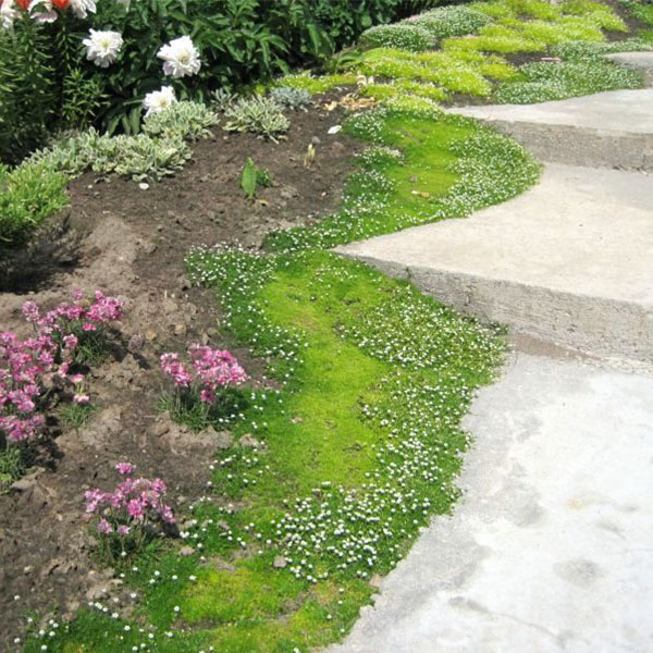 Мшанка шиловидная -Sagina subulata. Мшанка игольчатая (Sagina) - неприметное, миниатюрное растение, но несмотря на это порой она бывает не просто НЕОБХОДИМА, а абсолютно НЕЗАМЕНИМА в ландшафте. Например, когда у Вас в саду есть дорожка, выложенная из каменных плит, в этом случае щели между камнями идеально заполнит именно Мшанка. Это неприхотливый, вечнозеленый многолетник, напоминающий плотные куртины мха. Высота растения 1 - 2 см.