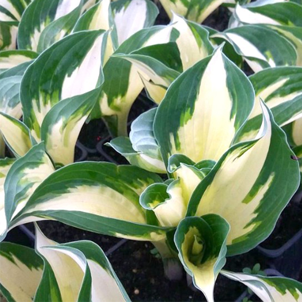 Хоста Fire & Ice - Hosta Fire and Ice. Для Хосты 'Огонь и Лёд' характерны скрученные или слегка скрученные сердцевидные листья с широкой белоснежной центральной частью, с нерегулярными тёмно-зелеными краями. Зрелые листья до 15 см в длину и до 10 см в ширину. Цветы светло - лавандовые. Предпочитает полутень и богатые гумусом, плодородные почвы. Высота взрослого растения до 30 см , ширина до 40 см.