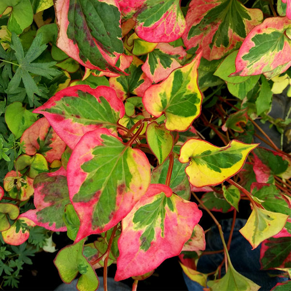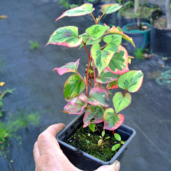 Хауттюйния сердцевидная Chameleon - Houttuynia Chameleon. Неприхотливое, относительно морозостойкое многолетнее растение высотой до 30 см. Стебли красные. Листья кожистые, сердцевидные, с очень интересной окраской - на голубовато-зеленом фоне размытые красные, жёлтые и бронзовые пятна . В начале лета на растении образуются некрупные, одиночные белые цветки с 5 лепестками и зелеными конусообразными серединками. Очень активно разрастается в стороны с помощью корневищ, которые могут «проползать» даже под бетонной дорожкой, что не свойственно другим корневищным многолетникам. Этот яркий травянистый многолетник можно культивировать по соседству с другими растениями, которые постоянно поливают. На зиму , можно подстраховаться и укрыть растение лапником или соломой.
